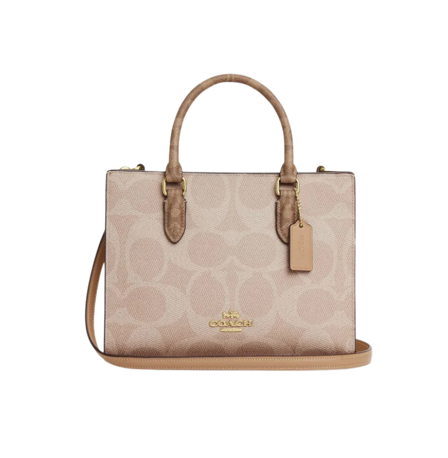 Coach Maggie Small Tote Bag In Blocked Signature Canvas Sand Tan Coach Maggie Small Tote Bag In Blocked Signature Canvas Sand Tan