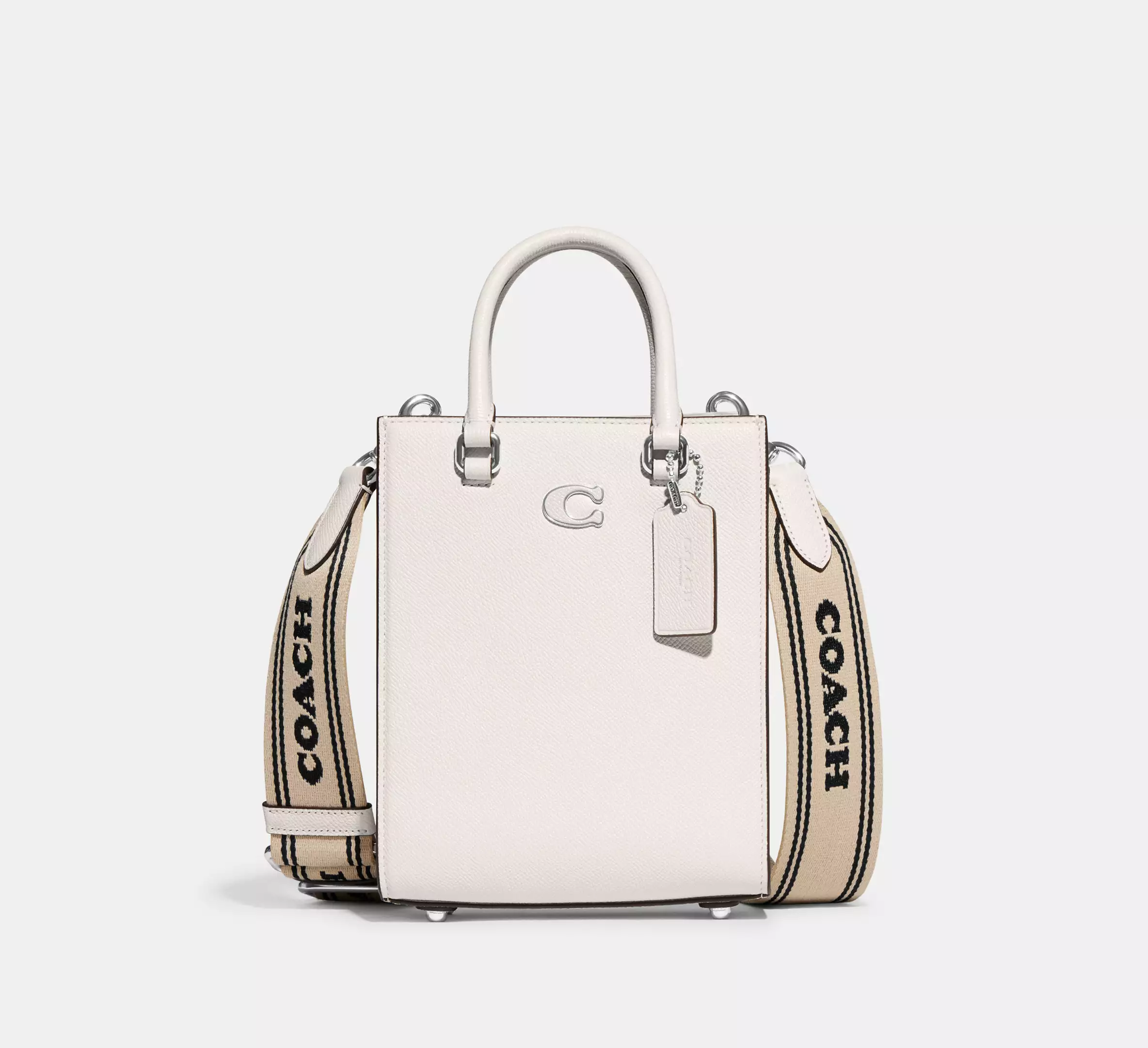 The perfect combination of modern minimalist design and understated sophistication, our Tote 16 is crafted of durable, scratch-resistant crossgrain leather. Finished with our Signature hardware, the compact style features a snap closure, Signature canvas multifunction pockets and an open interior with space for your phone, wallet and other essentials. Carry it by the top handle or wear on the shoulder and crossbody with the interchangeable straps.