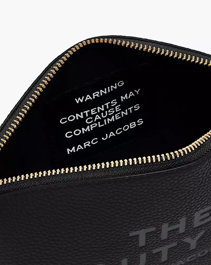 An essential travel companion for glam-on-the-go, our Beauty Bag crafted in covetable pebble leather has a luxuriously spacious interior for effortless makeup and toiletry storage. Featuring an internal jacquard patch that reads, “WARNING CONTENTS MAY CAUSE COMPLIMENTS” , this lovable accessory can be carried by its removable leather wristlet strap, or thrown in your bag for high-style organization. Part of THE collection.
