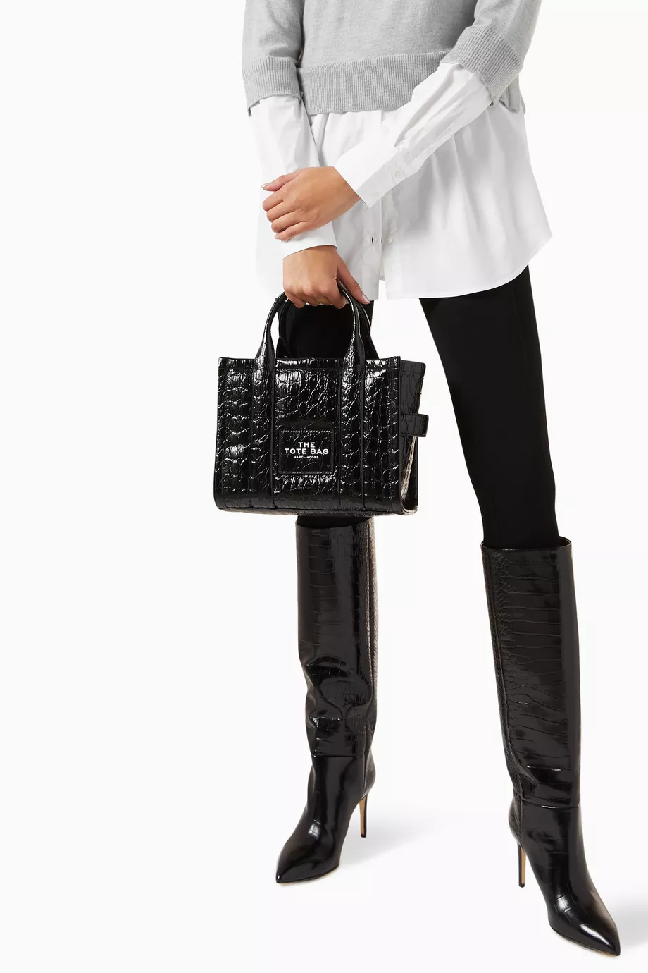 MARC JACOBS The Mini Tote Bag in Croc-embossed Leather – Black