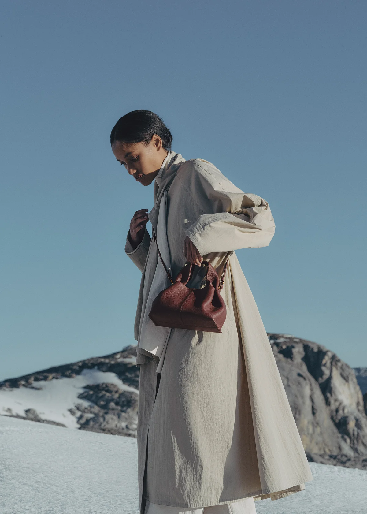 Sourced from certified tanneries in Europe, Polène leather requires little maintenance. To prolong its life, avoid prolonged exposure to light and heat, and keep away from water, greasy substances, perfumes, and cosmetic products. Take care with dark or new clothes, as the dye may bleed.