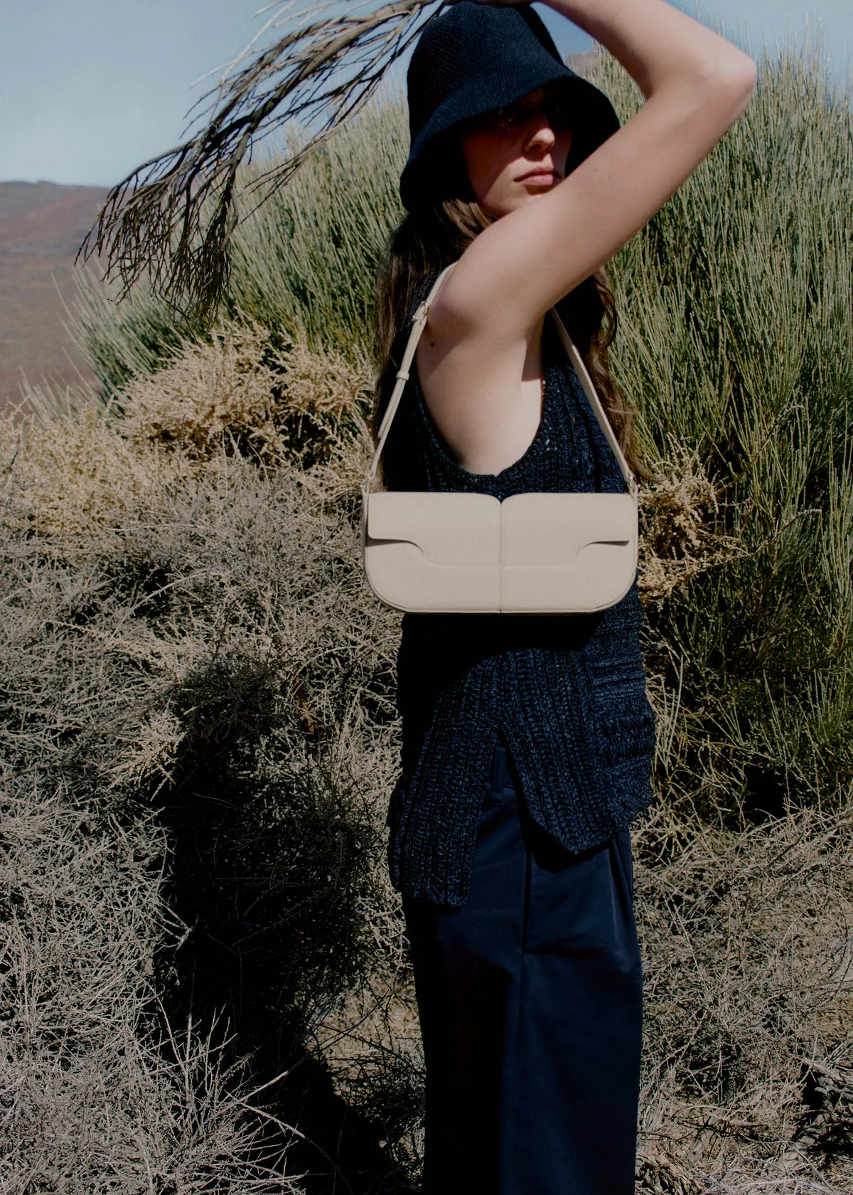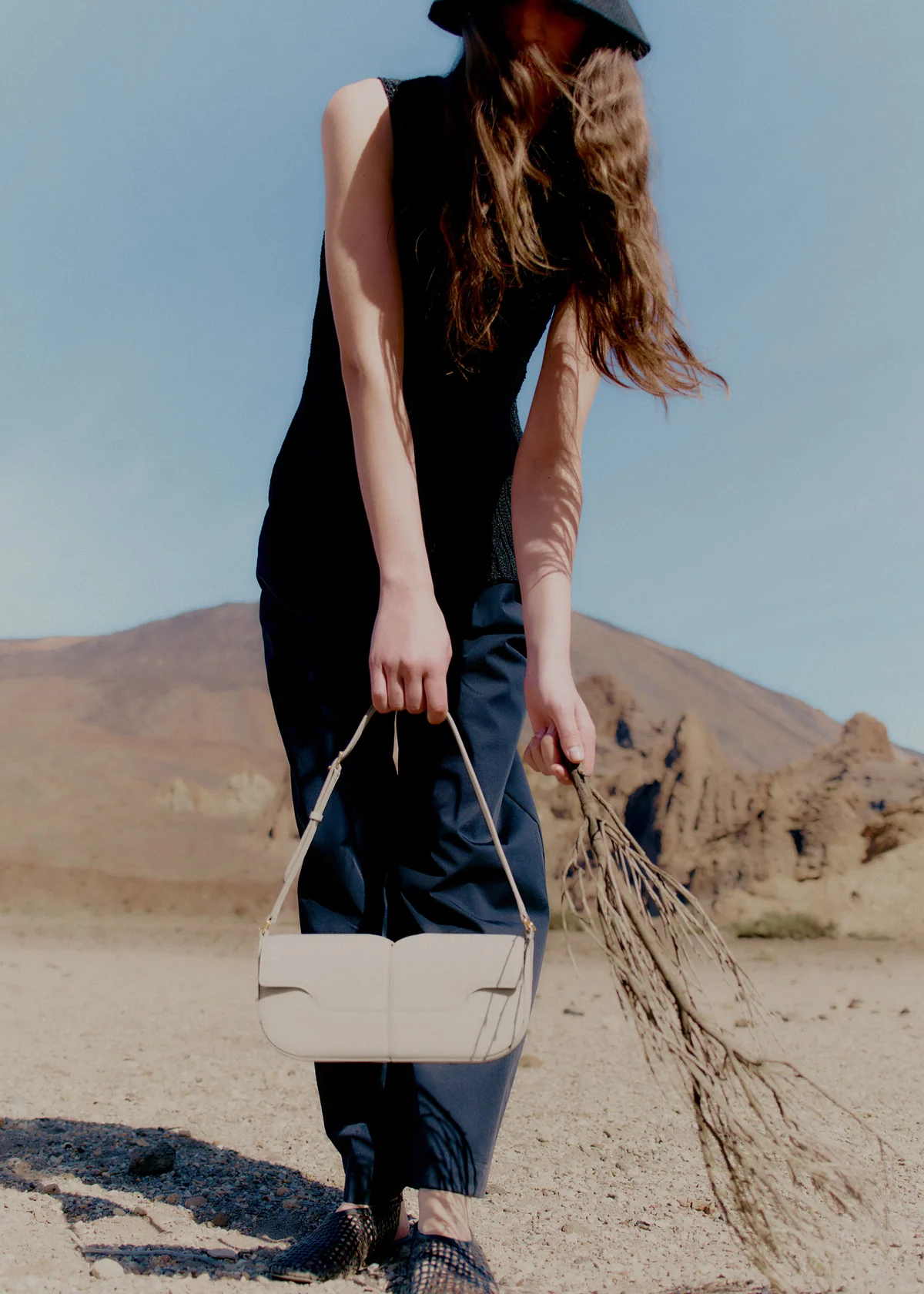 • Adjustable shoulder strap that can be worn short on the shoulder, featuring an engraved Polène buckle