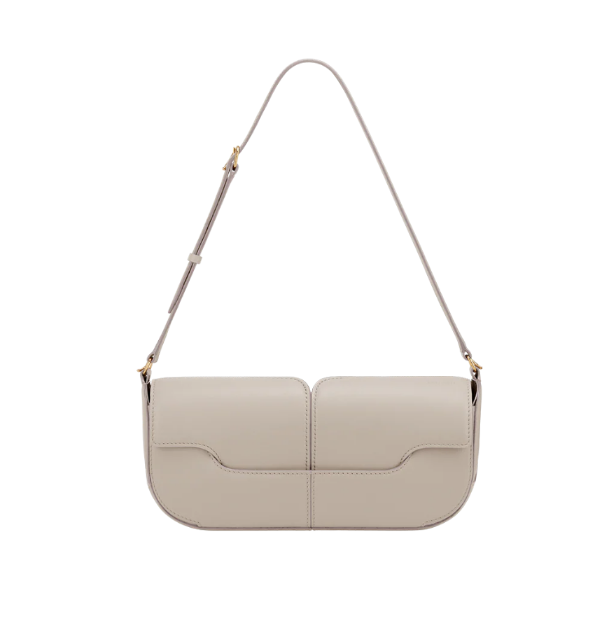 Adjustable shoulder strap that can be worn short on the shoulder, featuring an engraved Polène buckle