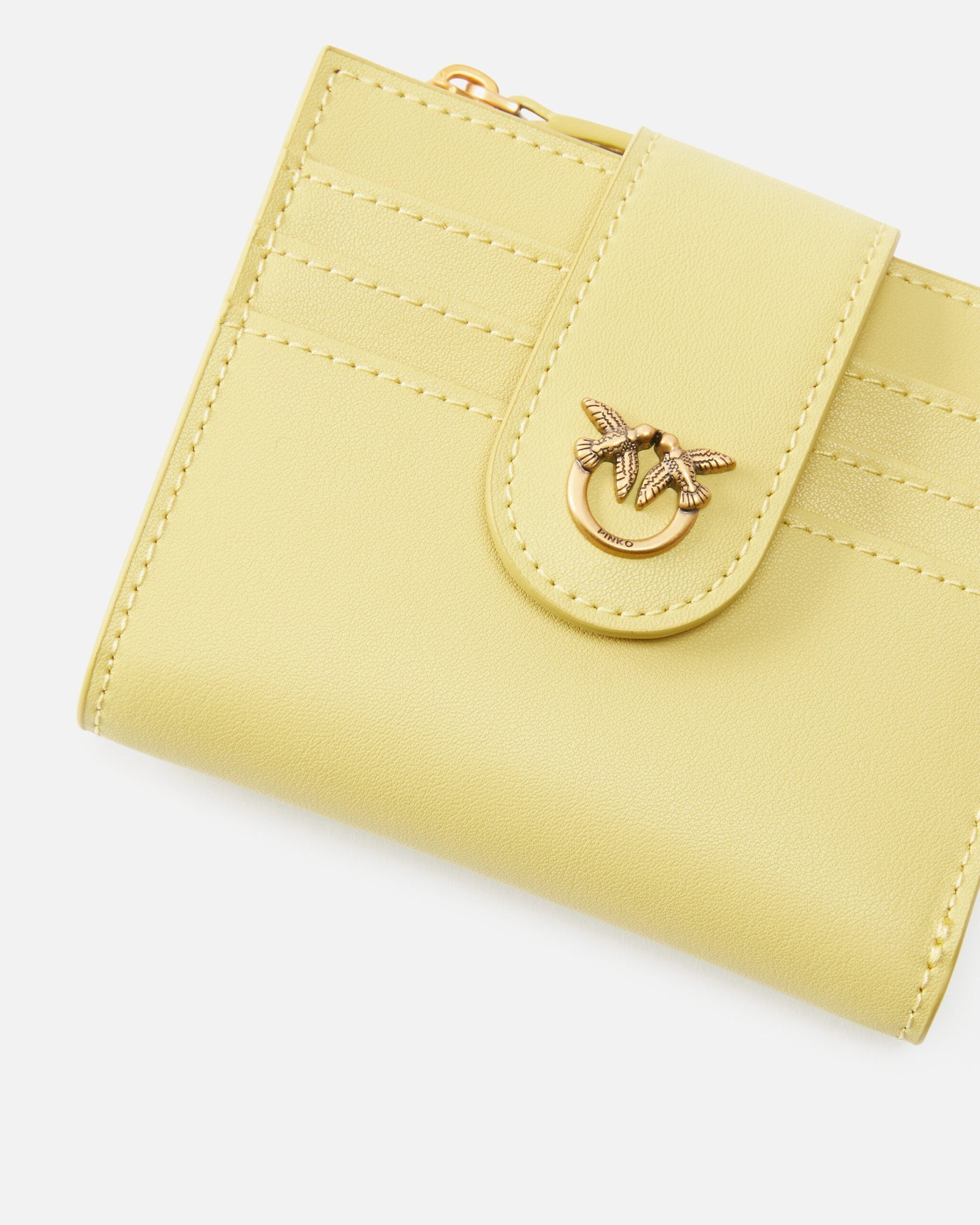 Pinko Small smooth leather wallet with logo Limoncello Pinko Small smooth leather wallet with logo Limoncello