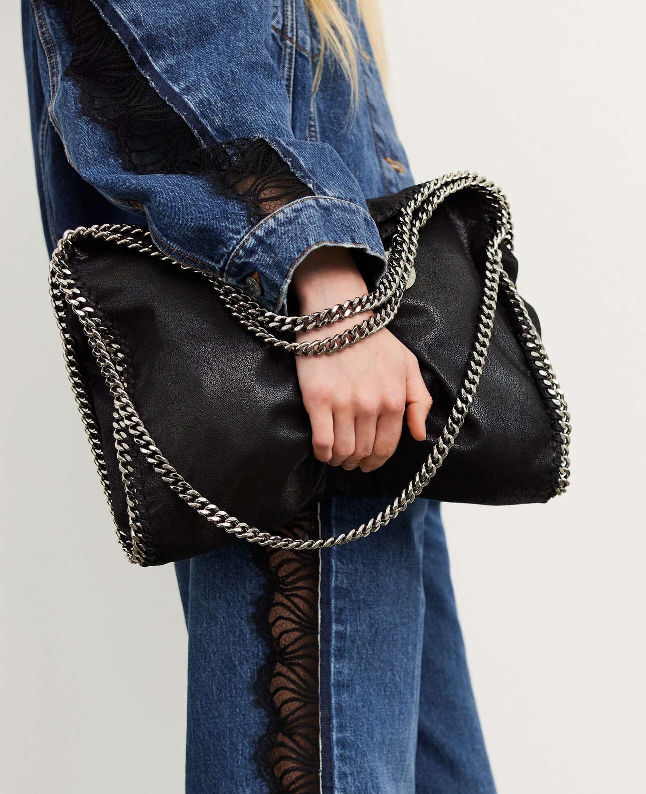Stella McCartney Falabella chain-trimmed tote bag Black Silver