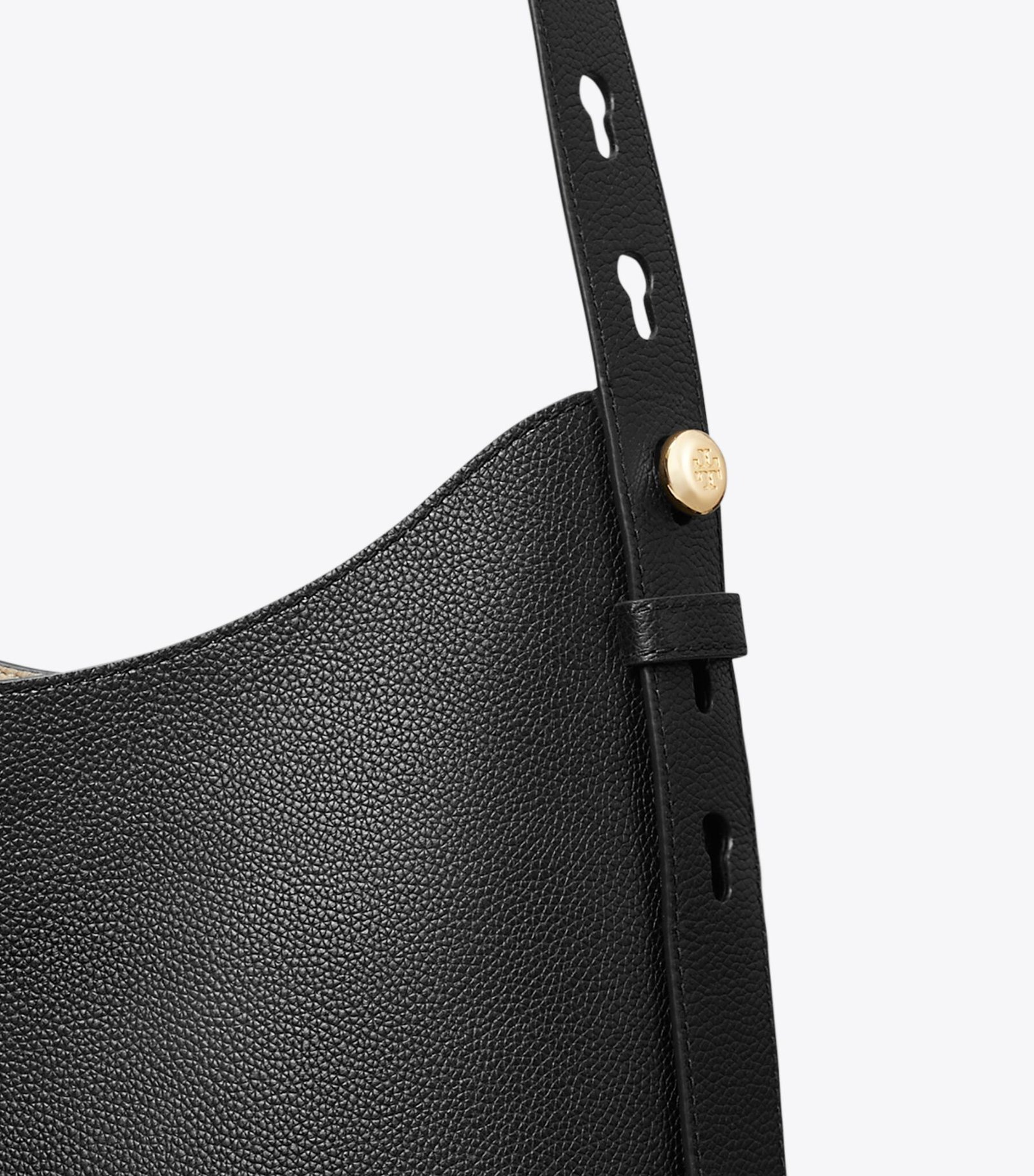 The Romy Hobo bag is crafted in soft pebbled leather. The ultimate everyday handbag, it is lightweight with a spacious interior organized with a deep zip pocket. Designed with a slim shoulder strap and our new button logo.