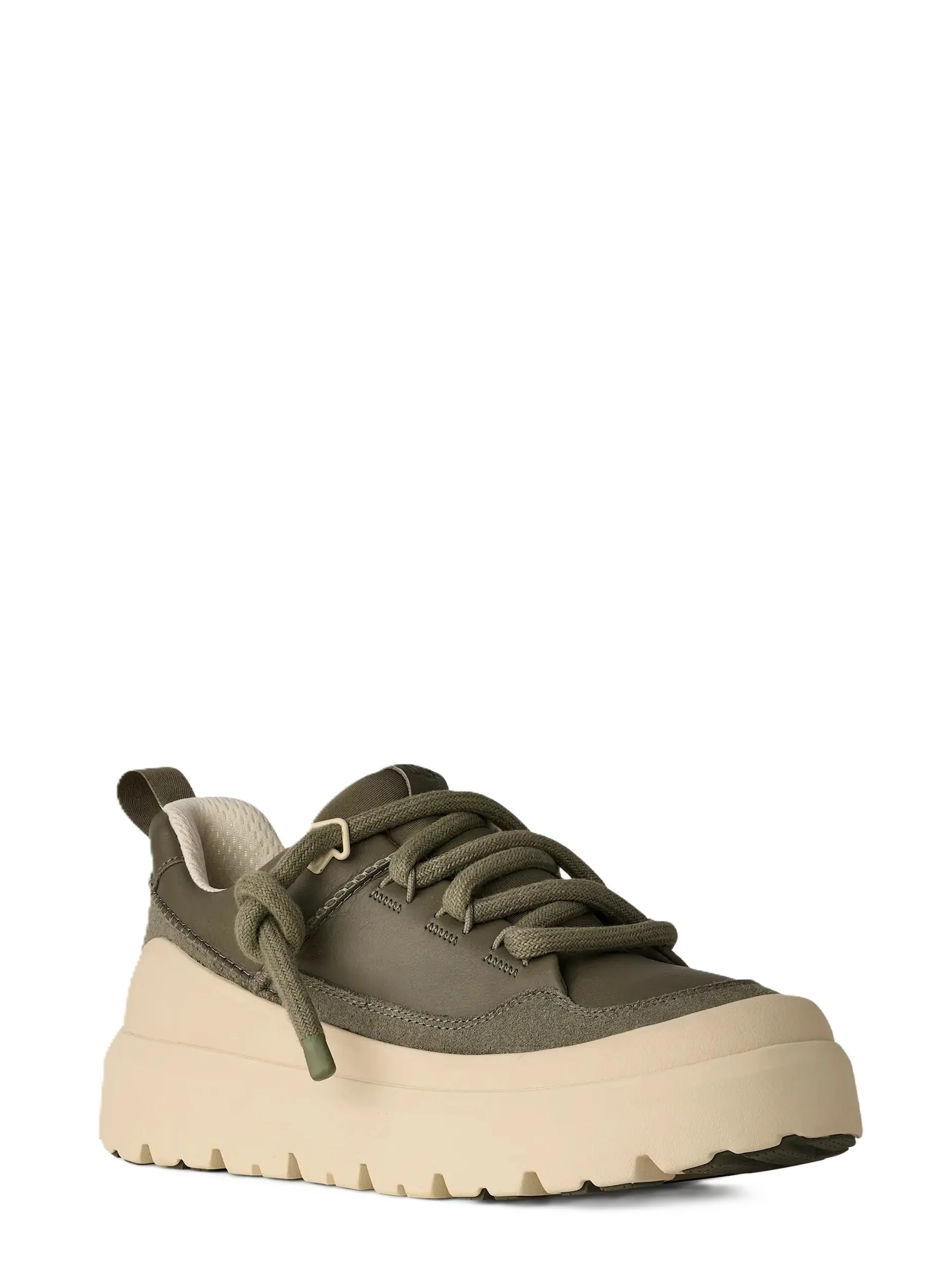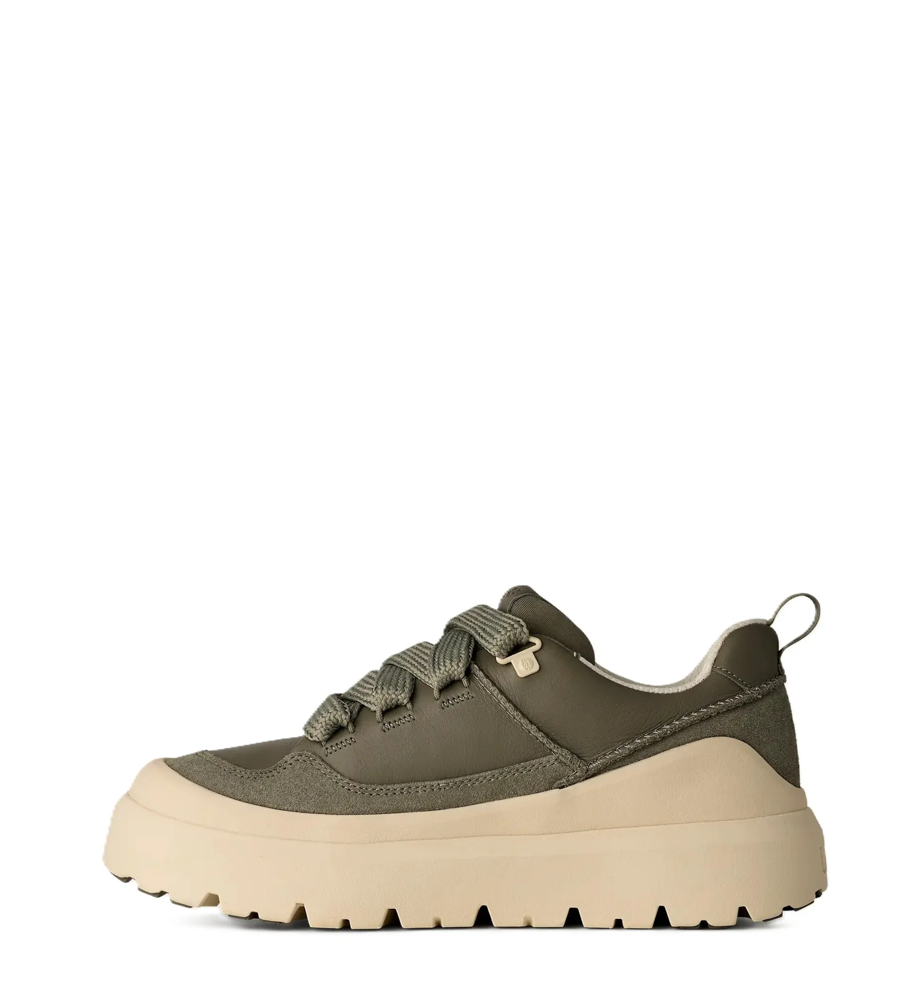 Take on the world in UGG® comfort in our Heritage Utility Sneaker. Channeling old and new, it combines iconic UGG® elements with classic sneaker vibes. The upper features full-grain leather and genuine suede, topped with chunky, round laces. Inside you’ll find a soft textile lining and insole from mostly recycled materials, while the lightweight sugarcane EVA outsole features Spider Rubber® Pods for enhanced traction, all year long.